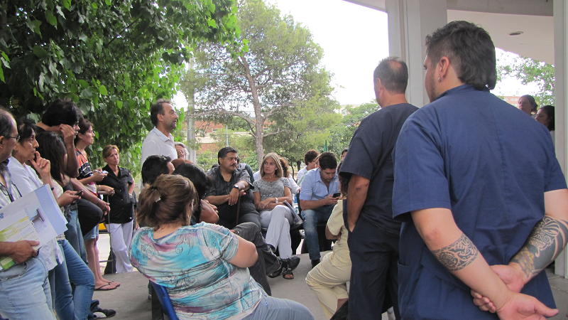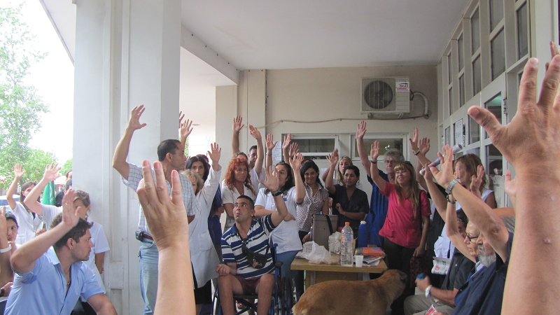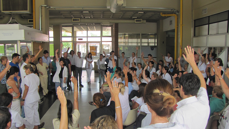 Durante la mañana se realizaron asambleas en los hospitales: Córdoba, Tránsito Cáceres de Allende, Rawson, de Niños, Maternidad Provincial, Santa María de Punilla, Neuropsiquiátrico, IPAD, Casa del Joven, Misericordia, Oncológico y Nuevo San Roque.