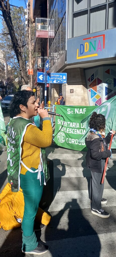 Hoy ATE llevó el plan de lucha de las y los trabajadores de la Secretaria de la Niñez, Adolescencia y Familia (SENAF) a la Defensora de los niños, niñas y adolescentes, Amelia López, y se movilizó desde media mañana a la esquina de Buenos Aires y Larrañaga, en barrio Nueva Córdoba, a la sede de la Defensoría para reclamar definiciones de la funcionaria sobre la pésimas condiciones de precarización laboral en la SENAF, condiciones que afectan directamente la garantía de derechos de las niñeces y juventudes bajo guarda del organismo.