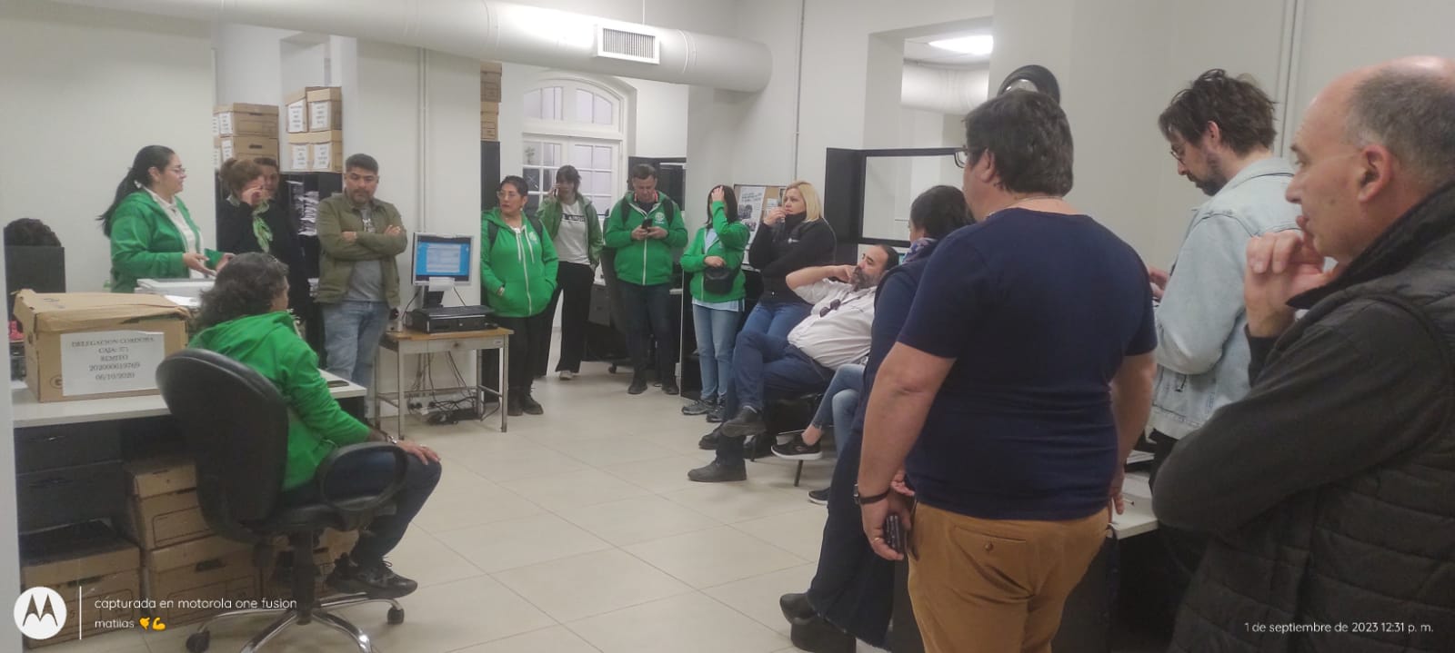 En una recorrida por distintos organismos del Estado nacional, ATE Córdoba llevó a cabo asambleas en el Ministerio de Trabajo, la Superintendentecia de Riesgos de Trabajo (SRT), el Renaper y la Dirección Nacional de Migraciones, sectores donde las y los trabajadores resolvieron adherir al paro provincial convocado por el plenario de estatales nacionales realizado el pasado 24 de agosto en al sede del Consejo Directivo Provincial (CDP).