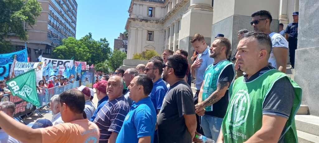Miles nos unimos en las calles y demostramos (una vez más) que nos manifestamos pacíficamente y ejercemos el derecho a la protesta sin tutelajes ni controles policiales. La policía sobre se ocupó de ordenar el tránsito. ATE marchó desde la Plaza San Martín hasta el Ministerio de Trabajo y luego continuó al Paseo Sobremonte, hasta que nuestro secretario General, Federico Giuliani, pudo escalar las escalinatas judiciales, para la foto conjunta con el resto de los dirigentes presentes en la ocasión.