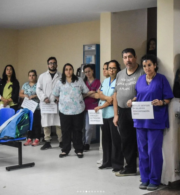 Por su parte, la delegada de ATE en el Hospital, Andrea Ferreyra, manifestó que son diez los trabajadores cesanteados en ese Centro de Salud y que la protesta del personal proseguirá firme hasta tanto las autoridades den marcha atrás y reincorporen al personal arbitrariamente despedido.