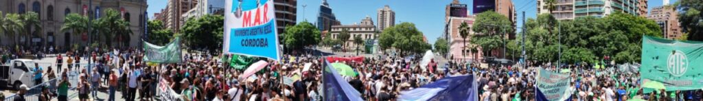 Al ingresar a la Obispo Salguero, la columna lució más nutrida y ocupó varias cuadras, mientras se repetían las consignas en contra de Milei y su plan de gobierno. El día soleado acompañaba el paso de los manifestantes. Al llegar al Patio Olmos la cabecera de la movilización, la columna se extendía a lo largo de más de tres cuadras, hasta Buenos Aires. Se estimó más de cinco mil personas presentes en la calle de nuestro sindicato, dando una señal muy concreta de que cómo organización no vamos a resignar ejercer nuestro derecho a protestar sino, todo lo contrario, estamos más convencidos y fuertes que nunca para luchar en las calles.