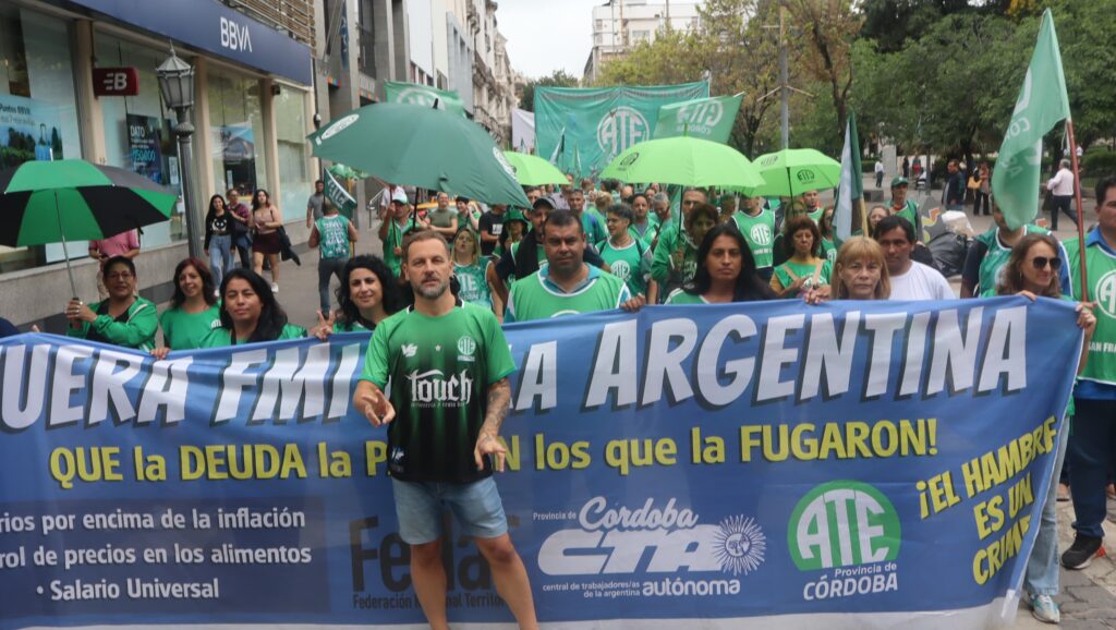 “Hoy se está llevando adelante un paro en toda Argentina porque somos las y los estatales los primeros que somos ajustados por el brutal gobierno que lleva adelante Milei, pero también los gobernadores como Llaryora y los intendentes de todos los signos políticos. Con despidos injustificados y sin causa y poniéndonos techo a las paritarias y condenarnos así a vivir bajo la línea de la pobreza. Por eso hoy ATE exige la reincorporación inmediata de las y los despedidos, pero también un piso de dignidad de 600 mil pesos como fija la canasta básica”, lanzó el dirigente.