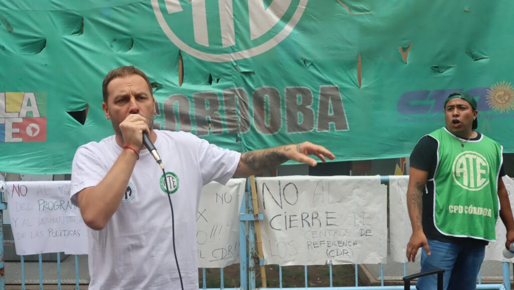 En el marco de la jornada federal de lucha que dispuso ATE en todo el país, en rechazo al cierre de los 59 Centros de Referencia (CDR), el Consejo Directivo Provincial encabezado por nuestros secretario General, Federico Giuliani, realizó un acto con frente a la sede de bv Chacabuco 329, que contó con la participación de la mayoría de las compañeras y compañeros del sector.