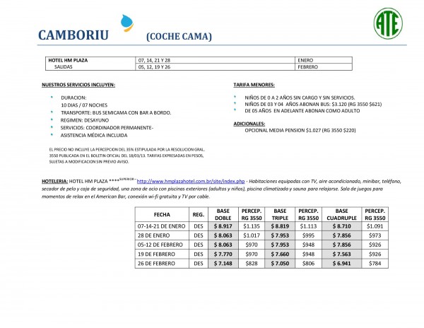 <em>Los convenios que suscribió ATE Córdoba este año incluyen sitios turísticos nacionales y extranjeros. Los interesados deben dirigirse a nuestra sede, Entre Ríos 450, o comunicarse al 0351-4257926/4232748 o via mail a atecbaturismo@hotmail.com </em> <a href="http://www.atecordoba.org/wp-content/uploads/2014/11/20-CAMBORIU-_HM_PLAZA-_CAMA_-_ATE-e1415997927531.jpg"><img class="aligncenter size-full wp-image-4802" src="http://www.atecordoba.org/wp-content/uploads/2014/11/20-CAMBORIU-_HM_PLAZA-_CAMA_-_ATE-e1415997927531.jpg" alt="20-CAMBORIU-_HM_PLAZA-_CAMA_-_ATE" width="600" height="464" /></a> <a href="http://www.atecordoba.org/wp-content/uploads/2014/11/22-FLORIANOPOLIS_-_TURISMAR-ATE-e1415997875340.jpg"><img class="aligncenter size-full wp-image-4804" src="http://www.atecordoba.org/wp-content/uploads/2014/11/22-FLORIANOPOLIS_-_TURISMAR-ATE-e1415997875340.jpg" alt="22-FLORIANOPOLIS_-_TURISMAR-ATE" width="600" height="464" /></a> <a href="http://www.atecordoba.org/wp-content/uploads/2014/11/21-CAMBORIU-_BELLA_CAMBORIU-ATE-e1415997917778.jpg"><img class="aligncenter size-full wp-image-4803" src="http://www.atecordoba.org/wp-content/uploads/2014/11/21-CAMBORIU-_BELLA_CAMBORIU-ATE-e1415997917778.jpg" alt="21-CAMBORIU-_BELLA_CAMBORIU-ATE" width="600" height="464" /></a> <a href="http://www.atecordoba.org/wp-content/uploads/2014/11/19-CAMBORIU-_HM_PLAZA-ATE.jpg"><img class="aligncenter size-full wp-image-4801" src="http://www.atecordoba.org/wp-content/uploads/2014/11/19-CAMBORIU-_HM_PLAZA-ATE-e1415997936788.jpg" alt="19-CAMBORIU-_HM_PLAZA-ATE" width="600" height="464" /></a> <a href="http://www.atecordoba.org/wp-content/uploads/2014/11/18-CAMBORIU-_TROPICALYA_PRIME_-CAMA-ATE.jpg"><img class="aligncenter size-full wp-image-4800" src="http://www.atecordoba.org/wp-content/uploads/2014/11/18-CAMBORIU-_TROPICALYA_PRIME_-CAMA-ATE-e1415997947137.jpg" alt="18-CAMBORIU-_TROPICALYA_PRIME_-CAMA-ATE" width="600" height="464" /></a> <a href="http://www.atecordoba.org/wp-content/uploads/2014/11/17-CAMBORIU-_TROPICALYA_PRIME_-ATE.jpg"><img class="aligncenter wp-image-4799" src="http://www.atecordoba.org/wp-content/uploads/2014/11/17-CAMBORIU-_TROPICALYA_PRIME_-ATE.jpg" alt="17-CAMBORIU-_TROPICALYA_PRIME_-ATE" width="602" height="465" /></a> <a href="http://www.atecordoba.org/wp-content/uploads/2014/11/11-_PIRIAPOLIS_-_HOTEL_GRAN_COLONIAL_RIVIERA-ATE.jpg"><img class="aligncenter wp-image-4793" src="http://www.atecordoba.org/wp-content/uploads/2014/11/11-_PIRIAPOLIS_-_HOTEL_GRAN_COLONIAL_RIVIERA-ATE.jpg" alt="11-_PIRIAPOLIS_-_HOTEL_GRAN_COLONIAL_RIVIERA-ATE" width="600" height="464" /></a> <a href="http://www.atecordoba.org/wp-content/uploads/2014/11/12-_PIRIAPOLIS_-_HOTEL_LUJAN-ATE.jpg"><img class="aligncenter wp-image-4794" src="http://www.atecordoba.org/wp-content/uploads/2014/11/12-_PIRIAPOLIS_-_HOTEL_LUJAN-ATE.jpg" alt="12-_PIRIAPOLIS_-_HOTEL_LUJAN-ATE" width="601" height="464" /></a> <a href="http://www.atecordoba.org/wp-content/uploads/2014/11/13-PUNTA_DEL_ESTE_-_OASIS-ATE.jpg"><img class="aligncenter wp-image-4795" src="http://www.atecordoba.org/wp-content/uploads/2014/11/13-PUNTA_DEL_ESTE_-_OASIS-ATE.jpg" alt="13-PUNTA_DEL_ESTE_-_OASIS-ATE" width="601" height="464" /></a> <a href="http://www.atecordoba.org/wp-content/uploads/2014/11/14-VI_A_DEL_MAR-ATE_.jpg"><img class="aligncenter wp-image-4796" src="http://www.atecordoba.org/wp-content/uploads/2014/11/14-VI_A_DEL_MAR-ATE_.jpg" alt="14-VI_A_DEL_MAR-ATE_" width="601" height="464" /></a> <a href="http://www.atecordoba.org/wp-content/uploads/2014/11/15-CAMBORIU-_CENTROMAR-ATE.jpg"><img class="aligncenter wp-image-4797" src="http://www.atecordoba.org/wp-content/uploads/2014/11/15-CAMBORIU-_CENTROMAR-ATE.jpg" alt="15-CAMBORIU-_CENTROMAR-ATE" width="601" height="464" /></a> <a href="http://www.atecordoba.org/wp-content/uploads/2014/11/16-CAMBORIU-_CENTROMAR_-CAMA-ATE.jpg"><img class="aligncenter wp-image-4798" src="http://www.atecordoba.org/wp-content/uploads/2014/11/16-CAMBORIU-_CENTROMAR_-CAMA-ATE.jpg" alt="16-CAMBORIU-_CENTROMAR_-CAMA-ATE" width="602" height="465" /></a> <a href="http://www.atecordoba.org/wp-content/uploads/2014/11/10-LA_FALDA_-_ANA_CLARA-ATE.jpg"><img class="aligncenter wp-image-4792" src="http://www.atecordoba.org/wp-content/uploads/2014/11/10-LA_FALDA_-_ANA_CLARA-ATE.jpg" alt="10-LA_FALDA_-_ANA_CLARA-ATE" width="600" height="464" /></a> <a href="http://www.atecordoba.org/wp-content/uploads/2014/11/09-CARLOS_PAZ_-_SIALDORF-ATE.jpg"><img class="aligncenter wp-image-4791" src="http://www.atecordoba.org/wp-content/uploads/2014/11/09-CARLOS_PAZ_-_SIALDORF-ATE.jpg" alt="09-CARLOS_PAZ_-_SIALDORF-ATE" width="600" height="464" /></a> <a href="http://www.atecordoba.org/wp-content/uploads/2014/11/08-LAS_GRUTAS_-_HOTEL_ACANTILADO-ATE.jpg"><img class="aligncenter wp-image-4790" src="http://www.atecordoba.org/wp-content/uploads/2014/11/08-LAS_GRUTAS_-_HOTEL_ACANTILADO-ATE.jpg" alt="08-LAS_GRUTAS_-_HOTEL_ACANTILADO-ATE" width="600" height="464" /></a> <a href="http://www.atecordoba.org/wp-content/uploads/2014/11/07-LAS_GRUTAS_-_COMPLEJO_ACANTILADO-ATE.jpg"><img class="aligncenter wp-image-4789" src="http://www.atecordoba.org/wp-content/uploads/2014/11/07-LAS_GRUTAS_-_COMPLEJO_ACANTILADO-ATE.jpg" alt="07-LAS_GRUTAS_-_COMPLEJO_ACANTILADO-ATE" width="600" height="464" /></a> <a href="http://www.atecordoba.org/wp-content/uploads/2014/11/06-_VILLA_GESELL_-_HOTEL_DON_CARLOS-ATE.jpg"><img class="aligncenter wp-image-4788" src="http://www.atecordoba.org/wp-content/uploads/2014/11/06-_VILLA_GESELL_-_HOTEL_DON_CARLOS-ATE.jpg" alt="06-_VILLA_GESELL_-_HOTEL_DON_CARLOS-ATE" width="600" height="463" /></a> <a href="http://www.atecordoba.org/wp-content/uploads/2014/11/05-_VILLA_GESELL_-_HOTEL_CITY_MAR-_ATE.jpg"><img class="aligncenter wp-image-4787" src="http://www.atecordoba.org/wp-content/uploads/2014/11/05-_VILLA_GESELL_-_HOTEL_CITY_MAR-_ATE.jpg" alt="05-_VILLA_GESELL_-_HOTEL_CITY_MAR-_ATE" width="600" height="464" /></a> <a href="http://www.atecordoba.