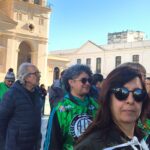 Para luego invitar a las/os presentes a “movilizarnos para decir basta, hoy a las 18 horas. Basta a la persecución de dirigentes sindicales, de dirigentes políticos, no puede ser lo que pasó con la compañera Cristina Kirchner. Tenemos que salir todos”.