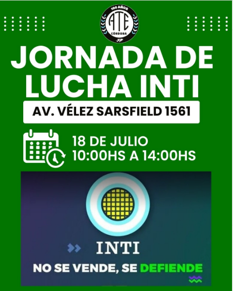El próximo viernes 18 de julio ATE llevará a cabo una jornada de lucha en el Instituto Nacional de Tecnología Industrial (INTI) para repudiar y contrarrestar el proceso de vaciamiento y destrucción del organismo clave del desarrollo industrial en el país.