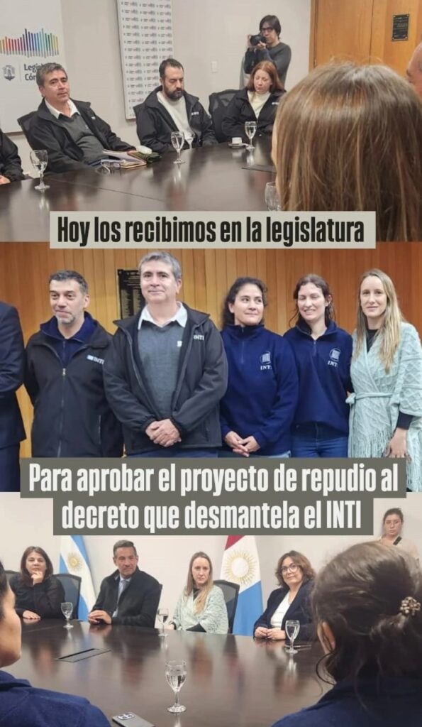 La delegación de estatales que concurrió a la Unicameral fue recibida por los y las legisladoras Matías Chamorro, Luciana Echevarría y Miguel Siciliano, entre otros, lo que da cuenta el amplio arco de apoyo político a la lucha de los trabajadores para proteger el status del INTI, cuya delegación en Córdoba Capital se encuentra frente a la Plaza de las Américas.