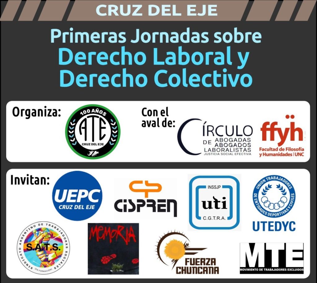 La actividad contó con el acompañamiento de otros sindicatos y organizaciones sociales de la región y tuvo la participación como disertantes de Victoria Chabrando y Leandro Inchauspe (Facultad de Filosofía y Humanidades -UNC), el abogado Ricardo Seco (Círculo de Abogadas y Abogados Laboralistas de Córdoba) y la letrada María Marta Terragno (Equipo legal ATE y CAAL).