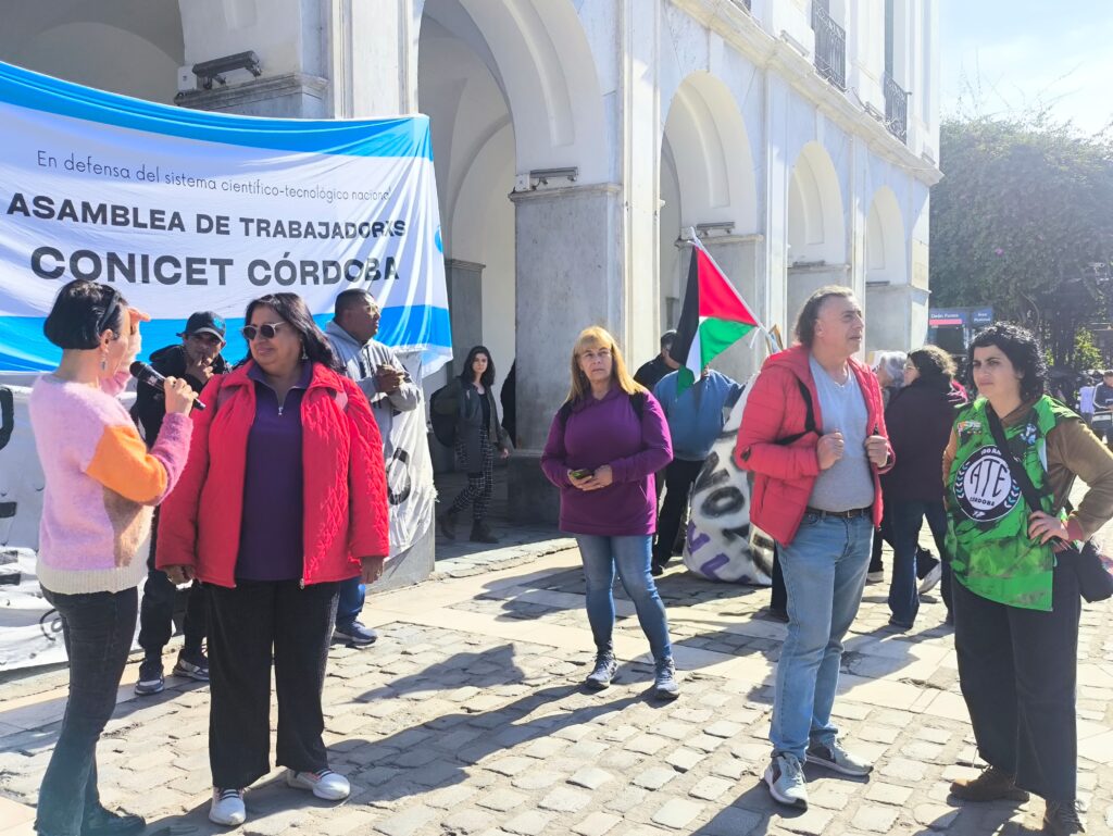 Las y los trabajadores de CONICET Córdoba, junto a integrantes de la Mesa Sindical de ciencia y Técnica y miembros del Consejo Directivo Provincial (CDP) realizaron hoy la primera de las dos jornadas de protesta que el organismo de formación y desarrollo científico estatal nacional celebran para reclamar presupuesto para el complejo científico tecnológico y la educación pública.