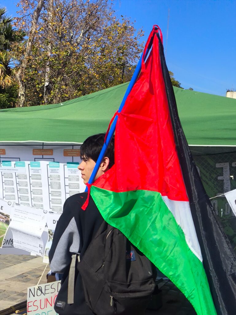 La actividad consistió en la instalación en Plaza San Martín de una feria de ciencias, al tiempo que los y las manifestantes acompañaron la Ronda 70 de las y los Jubilados, que se encuentran en estos días reclamando contra el veto de Milei al aumento salarial que aprobó el Congreso para los y las beneficiarias del sistema previsional nacional.