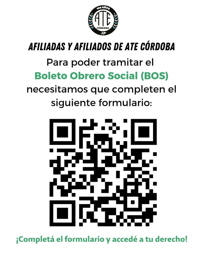 Desde el Consejo Directivo Provincial de ATE Córdoba estamos acompañando a nuestras afiliadas y afiliados en la gestión del Boleto Obrero Social (BOS).