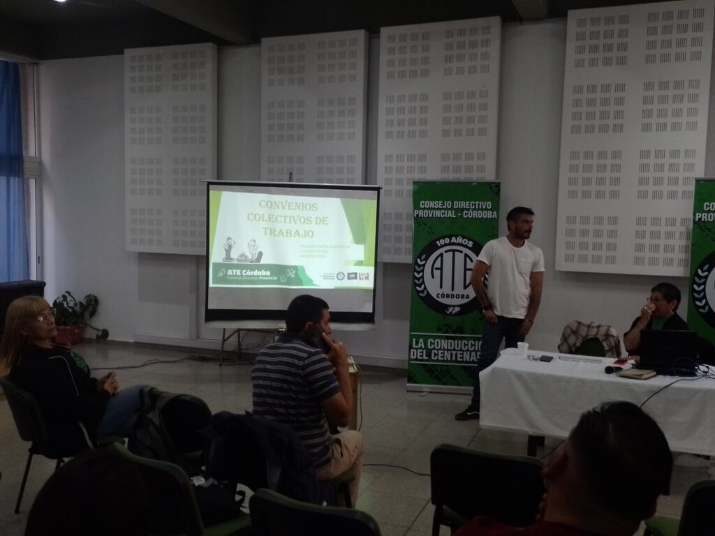 Hoy se desarrolló en la sede del Consejo Directivo Provincial una jornada de capacitación sobre Convenios Colectivos de Trabajo. El taller estuvo a cargo de la secretaria de CCT, Marcela Chávez, y de Leonardo Barrios Caro, compañero de la Administración de Parques Nacionales Regional Centro.