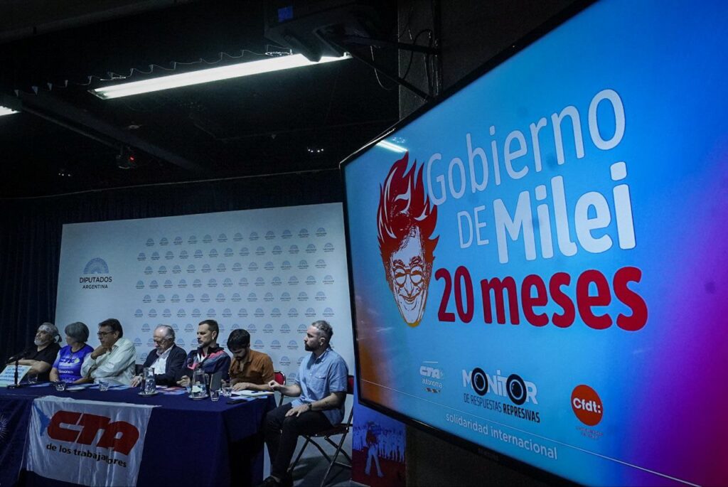 Jimena Frankel, Coordinadora del Monitor de Respuestas Represivas del Instituto de Estudios y Formación (IEF) de la CTA Autónoma, presentó un informe sobre las represiones durante el gobierno de Javier Milei. “En 20 meses de gobierno de Milei, se dan cuenta de al menos 88 represiones con 2534 personas heridas”.