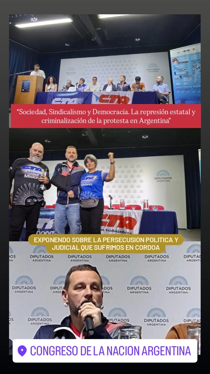 El dirigente detalló los aspectos principales de la política que en Córdoba impone el gobierno de Martín Llaryora y su ministro de Seguridad Juan pablo Quinteros, de la que fue víctima junto a otros 14 referentes durante la represión a una movilización frente al área social de la Municipalidad de la Capital provincial, donde fue detenido, golpeado y lesionado gravemente en un codo y hoy enfrenta una causa penal.