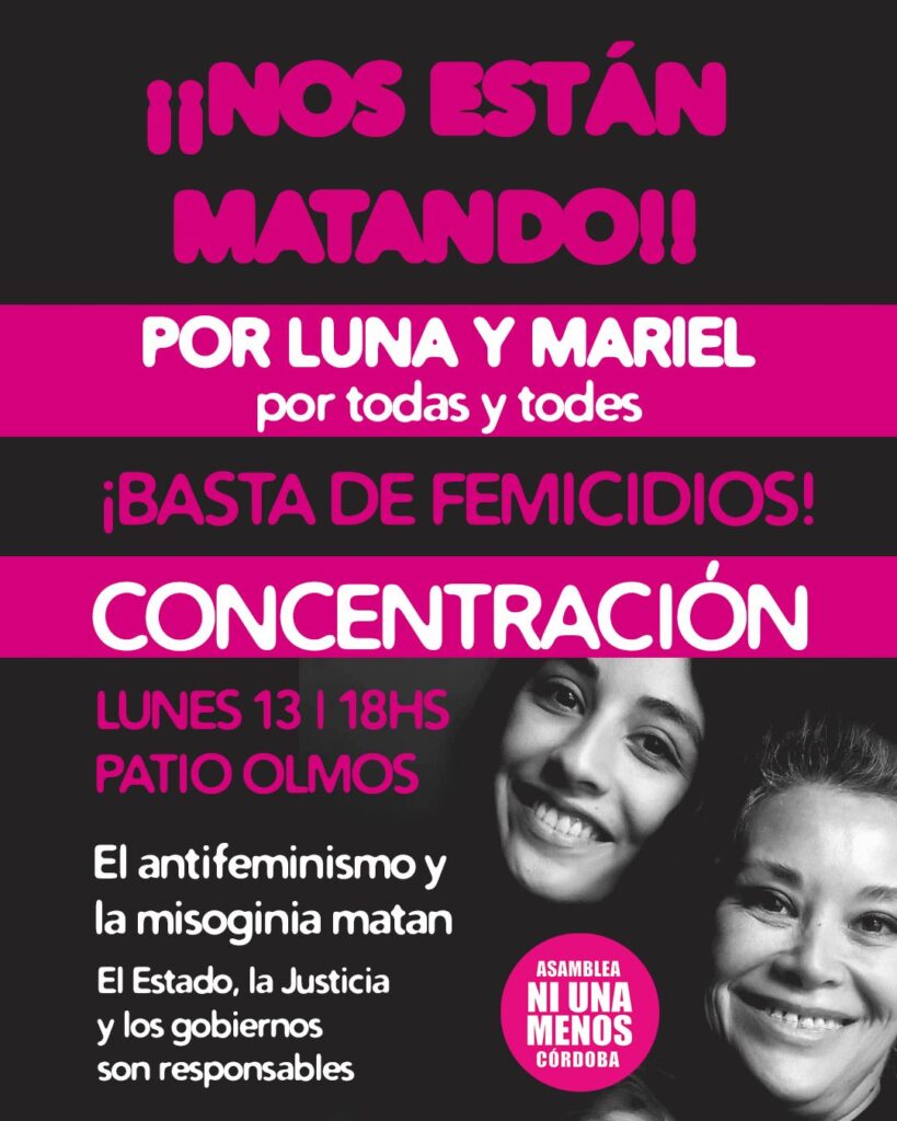 Bajo la consigna de “el antifeminismo y la misoginia matan”, ATE marchará hoy junto al colectivo Ni una Menos para repudiar el atroz femicidio en Córdoba de Luna Giardina y su madre Mariel Zamudio, cometido por su ex pareja, vinculado a los grupos antiderechos más fanáticos que ampara el gobierno de Javier Milei. El crimen incluyó el secuestro del hijo de Luna y su recuperación en Entre Ríos mientras se detuvo al progenitor.