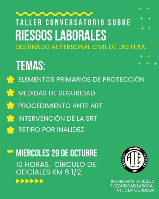 La actividad está organizada por la Secretaría de Salud y Seguridad Laboral de ATE Córdoba.