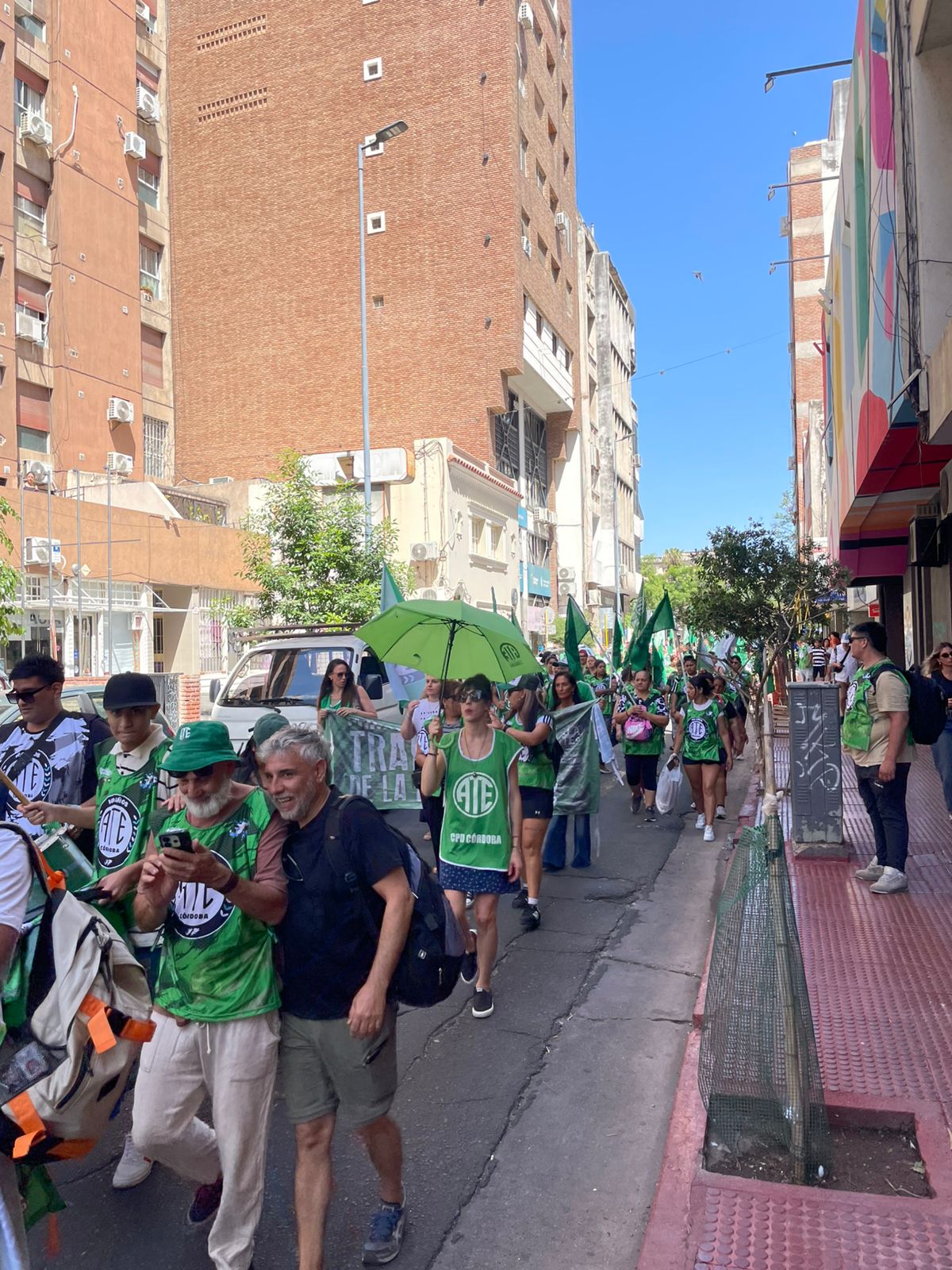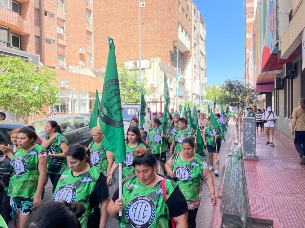 La nutrida marcha estuvo integrada por estatales de Córdoba Capital y del interior provincial, destacándose la participación de las seccionales ATE Río cuarto y ATE Cruz del Eje, con sus respectivos secretarios/as generales Rafaela Alcoba y Juan Pablo Pozzi.