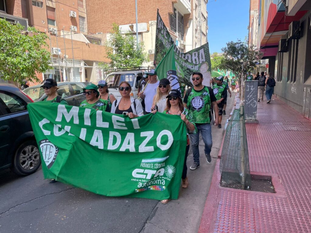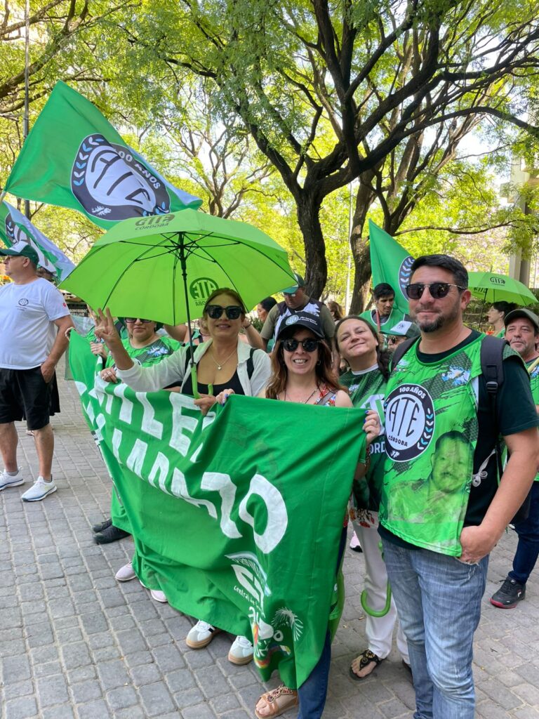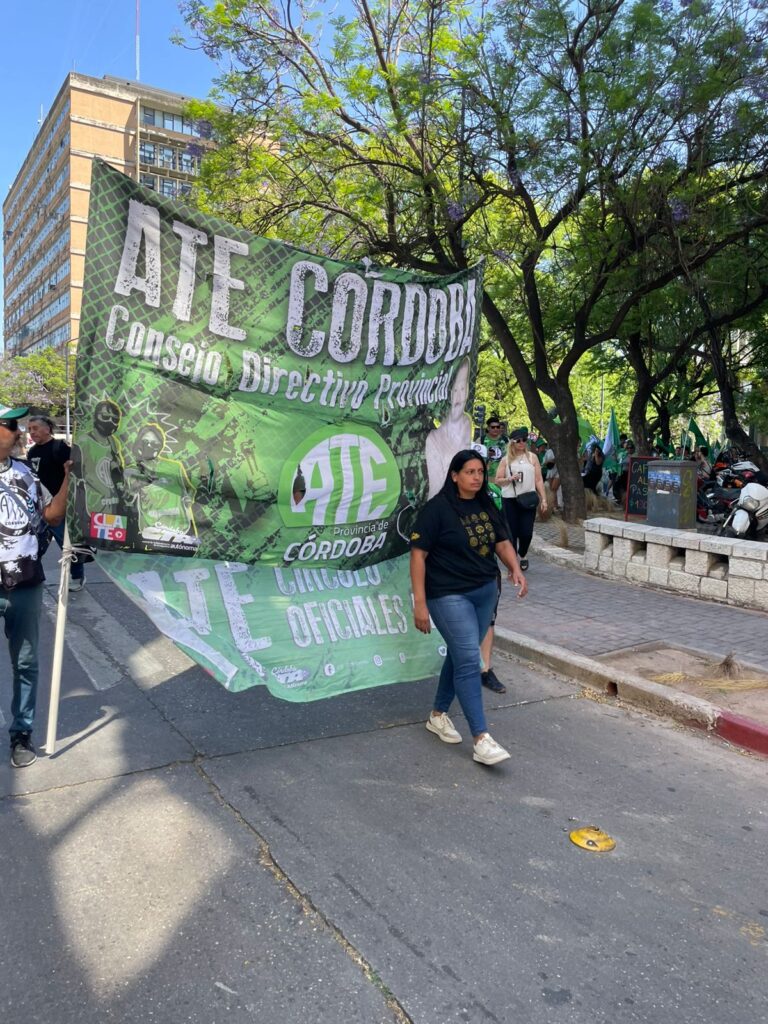 Encabezada por la secretaria Adjunta del Consejo Directivo Provincial, Gabriela Alcoba, la columna de estatales se integró con compañeros y compañeras de CONICET, FENAT-CTAA, Personal Civil FFAA, Ministerio de Trabajo, ANAC, Parques Nacionales, SAF, no docentes UNC y SENASA, entre otros.