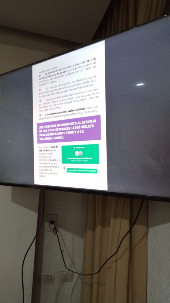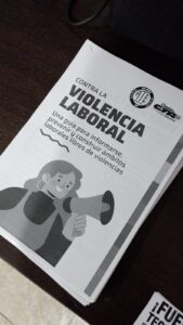 En la oportunidad se facilitó material bibliográfico sobre violencia laboral. “Es importante poner el tema en la agenda, porque está naturalizado, normalizando un montón de situaciones que no corresponden, más en estos tiempos, en este contexto, en donde hay una violencia estructural, legitimada desde la máxima conducción del país, como es el presidente para abajo”, agregó la dirigente.