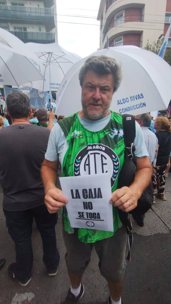 Movilizados y movilizadas, defendiendo las jubilaciones, los salarios y el futuro de las y los trabajadores estatales, porque “La Caja no se toca. Nuestros derechos no se negocian”.