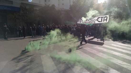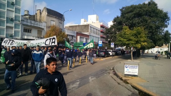 En esta ciudad, la columna de manifestantes se concentró en Sarmiento e Hipólito Yrigoyen. Recorrieron esa última calle hasta Buenos Aires, para dar una vuelta a la plaza Centenario y realizar el acto en Santa Fe y Alem, para continuar marchando hasta la sede del gremio, donde desconcentraron.
