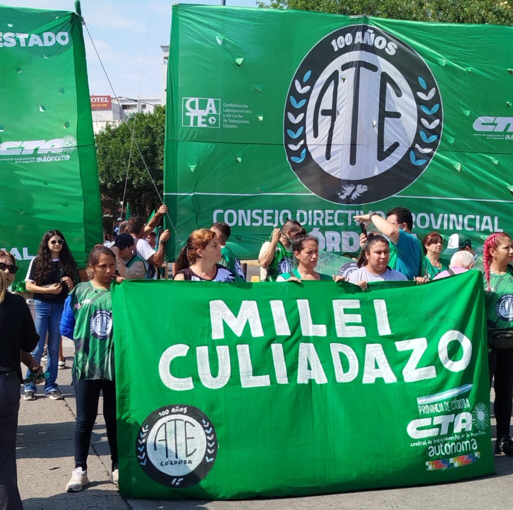 ATE y la CTA Autónoma se movilizaron hoy junto a las centrales sindicales para rechazar en Córdoba la Reforma Laboral que impulsa el Gobierno de Milei, que pretende arrasar con los derechos laborales en Argentina, y se plantaron en una concentración multitudinaria frente a la Casa de Gobierno de la Provincia, para exigirle al gobernador Martín Llaryora que los diputados y senadores de su partido voten en rechazo del proyecto oficial, en un acto que contó con la presencia de dirigentes nacionales como el secretario General de ATE, Rodolfo Aguiar, su par de la UOM, Abel Furlan, el secretario General de Aceiteros, Daniel Yofra, el secretario General de la CTAA Nacional Hugo Godoy, la secretaria Adjunta del Consejo Directivo Nacional de ATE, Mercedes Cabezas, y diversos dirigentes gremiales nacionales y provinciales.