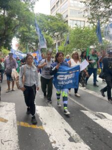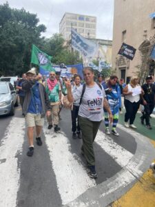 “Venimos construyendo esta jornada de lucha, para marchar en unidad con todos los sindicatos y con todas las centrales de trabajadores. Por eso la decisión de nuestra ATE hoy obviamente de acompañar a los jubilados y venir hoy acá a la Casa Histórica de la CGT a confluir con otras organizaciones sindicales, entendiendo que la unidad es el camino para derrotar hoy este gobierno que viene por los trabajadores y sobre todo por los sindicatos”, explicó la secretaria Adjunta del Consejo Directivo Provincial, Gabriela Alcoba.