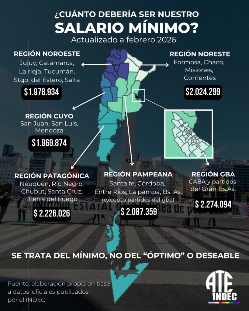 Un informe de la Junta Interna de ATE INDEC publicado ayer fijó la Canasta Familiar de Ingresos Mínimos en 2.087.359 para una familia de cuatro integrantes en Córdoba y la Región Pampeana, superando en casi más de 600 mil pesos la cuestionada Canasta Familiar que fijó recientemente el INDEC oficial.