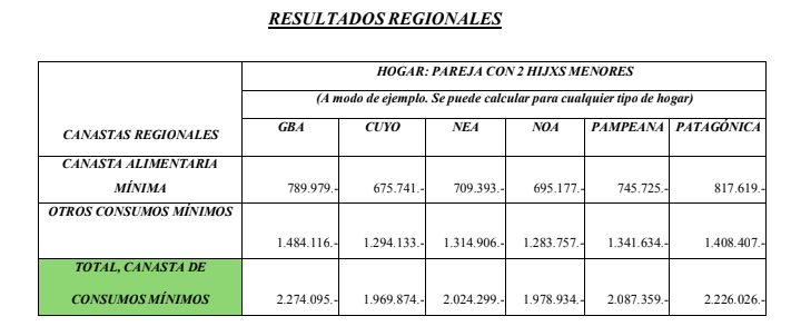 En Capital Federal y el AMBA, la Canasta Familiar de Ingresos Mínimos asciende a 2.274.094.