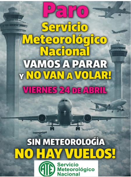 Las y los trabajadores del Servicio Meteorológico Nacional (SMN) realizarán un paro en rechazo de los despidos que impone el Gobierno de Milei sobre el organismo.