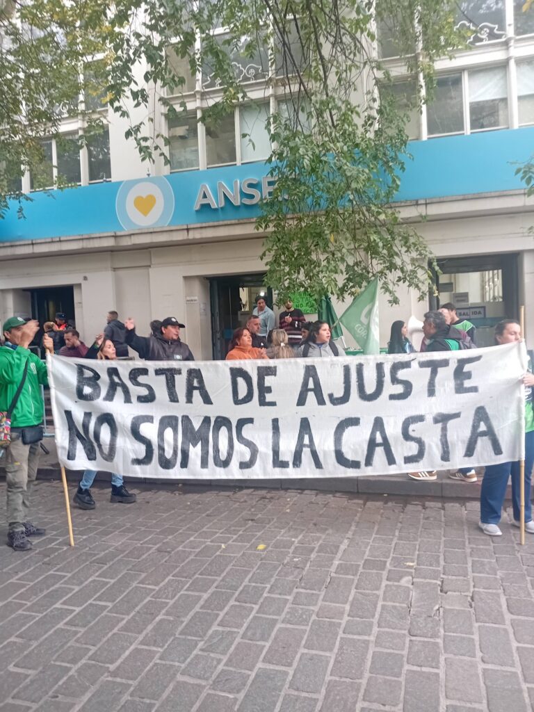 Durante la mañana de hoy trabajadores estatales, activistas, integrantes de la Federación Nacional Territorial, distintos sectores nacionales, provinciales y municipales nos movilizamos frente a la ANSES, sobre la Plaza San Martín, para exigir la apertura de la paritaria nacional que recomponga los salarios de hambre que impone el gobierno de Javier Milei.