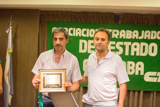 Un momento muy emotivo se vivió cuando los compañeros dieron a Oscar Cacho Mengarelli – histórico dirigente de nuestra provincia, secretario General del CDP por varios periodos, fundador de Anusate, junto a Víctor de Gennaro, Germán Abdala y Héctor Quagliaro entre otros, forjador de la CTA de la provincia, y secretario Adjunto del CDP en la última gestión- una pechera enmarcada de la marcha grande que se realizara allá por el 2001, cuando la CTA recorrió el país en defensa del trabajo y la dignidad del pueblo.