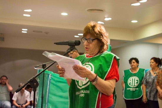 María Liliana Salerno se presentó formalmente ante el auditorio como nueva secretaria General de Córdoba y agradeció a la militancia que logró que un 80% de los votantes eligieran la lista Verde Anusate para conducir los destinos de nuestra ATE por los próximos cuatro años.