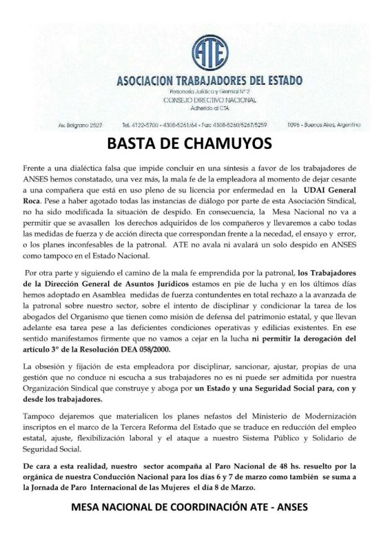 En este momento, las oficinas de la Udai General Roca se encuentran ocupadas por los compañeros de ATE, resistiendo un desalojo policial.