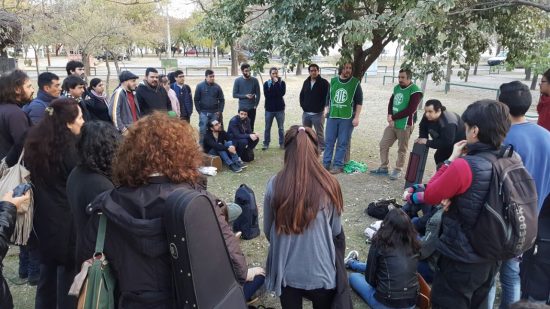 “Están por aprobar un reglamento que implica el despido encubierto de 60 trabajadores de la cultura”, dijo Victoria Pato, delegada de los músicos, frente al conjunto de los decanos de las distintas facultades presentes.