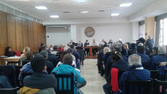 La mesa que condujo el acto estuvo integrada por Oscar Cacho Mengarelli (jubilados de ATE), Miguel Berrotarán (Comisión Permanente de Jubilados), Hugo Vallejos, Alberto Fonseca, y Clara Volcoff y Leonardo Ramé (federación de centros de jubilados independientes).