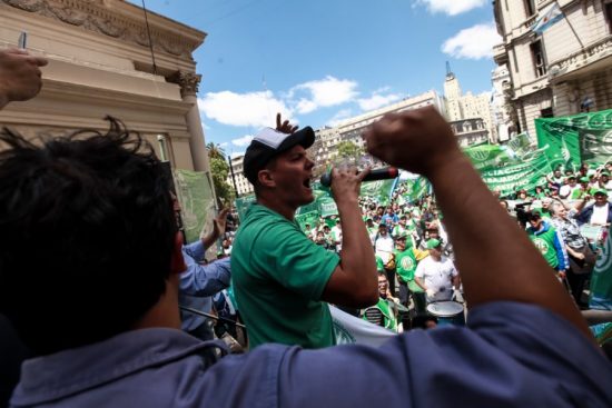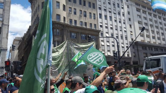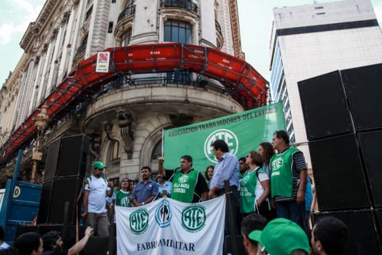 Luego de la primera parada de protestas, la gran columna verde se volvió a movilizar subiendo por la calle Adolfo Alsina, hasta desembocar en la Plaza de Mayo, y después de pasar frente al Cabildo, el escenario se instaló definitivamente en la esquina de Diagonal Norte y San Martín, en la puerta del Ministerio de Modernización, desde donde los dirigentes estatales apuntaron sus críticas a Andrés Ibarra, como principal ejecutor del ajuste en el Estado y la reducción de empleados públicos.