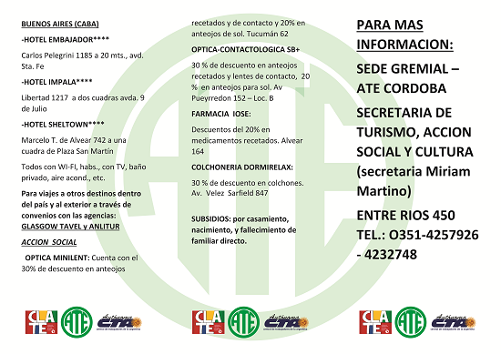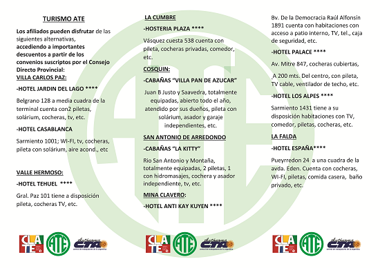 Damos a conocer a los afiliados los convenios con diversas firmas hoteleras, en su gran mayoría con un descuento del 10%, además de los acuerdos para disfrutar de beneficios en comercios.