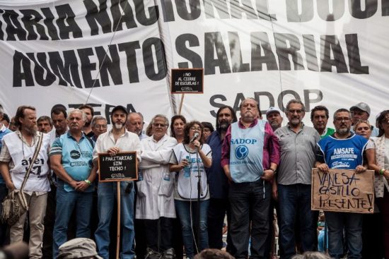 “Las movilizaciones comenzaron en el día de hoy, aquí en la Ciudad Autónoma de Buenos Aires, acompañando desde ATE a los trabajadores docentes al Palacio Pizzurno, y entre hoy y mañana realizaremos movilizaciones en las distintas provincias. Este plan de lucha que venimos llevando adelante desde ATE, siendo este el tercer Paro del año, demuestra la voluntad de los trabajadores estatales de exigirle al Presidente Macri la inmediata convocatoria a una paritaria nacional libre y sin techo que permita a los trabajadores estatales recuperar lo perdido y no ser la variable de sus políticas de ajuste que nos están llevando a una situación de abismo social”, agregó el Secretario General de ATE Nacional.