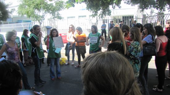 En horas de la mañana las trabajadoras del Equipo de Atención de Víctimas de Delitos Sexuales realizó una protesta frente al Polo de de la Mujer para exigir que el Ministerio de Justicia y DD.HH. resuelva el pase a planta de 20 compañeras contratadas.